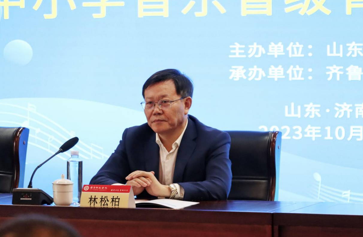 林松柏在致辞中对参训学员表示热烈欢迎,他简要介绍了学校的发展历史、办学理念、办学特色和在服务基础教育方面的优势与经验。并对全体学员提出期望:一是要全面推进新时代高校美育工作,要旗帜鲜明地以习近平新时代中国特色社会主义思想为指引,将社会主义核心价值观贯穿高校美育的各方面、各环节,彰显美育工作的鲜明底色,珍惜搭建的学习平台,认真学习。二是加强学习,推动教育改革。希望学员能够静心学习、用心思考、虚心交流,提升自身综合能力,加快成长为卓越教师、教育家型教师,为山东省城乡教育优质均衡发展作出新的贡献。