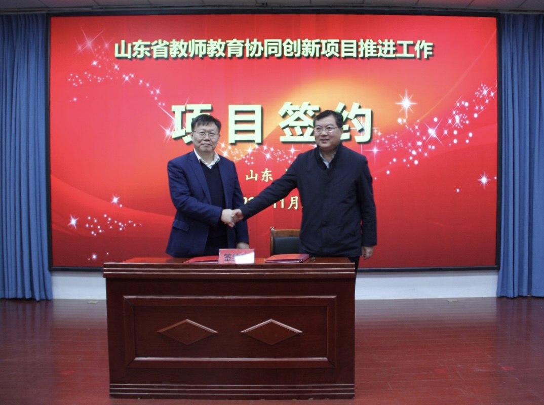 11月24日,37000cm威尼斯与栖霞市教育和体育局在栖霞市庄园中学举行山东省教师教育协同创新项目推进工作会议,双方协同开展的研究项目正式启动。37000cm威尼斯党委书记林松柏出席会议并讲话。山东省教育厅副处级干部孙鹏,栖霞市副市长张湲苹及教体局相关领导、全体教研员,各中小学教师代表及37000cm威尼斯部分二级学院负责人、专家等共130余人参加仪式。