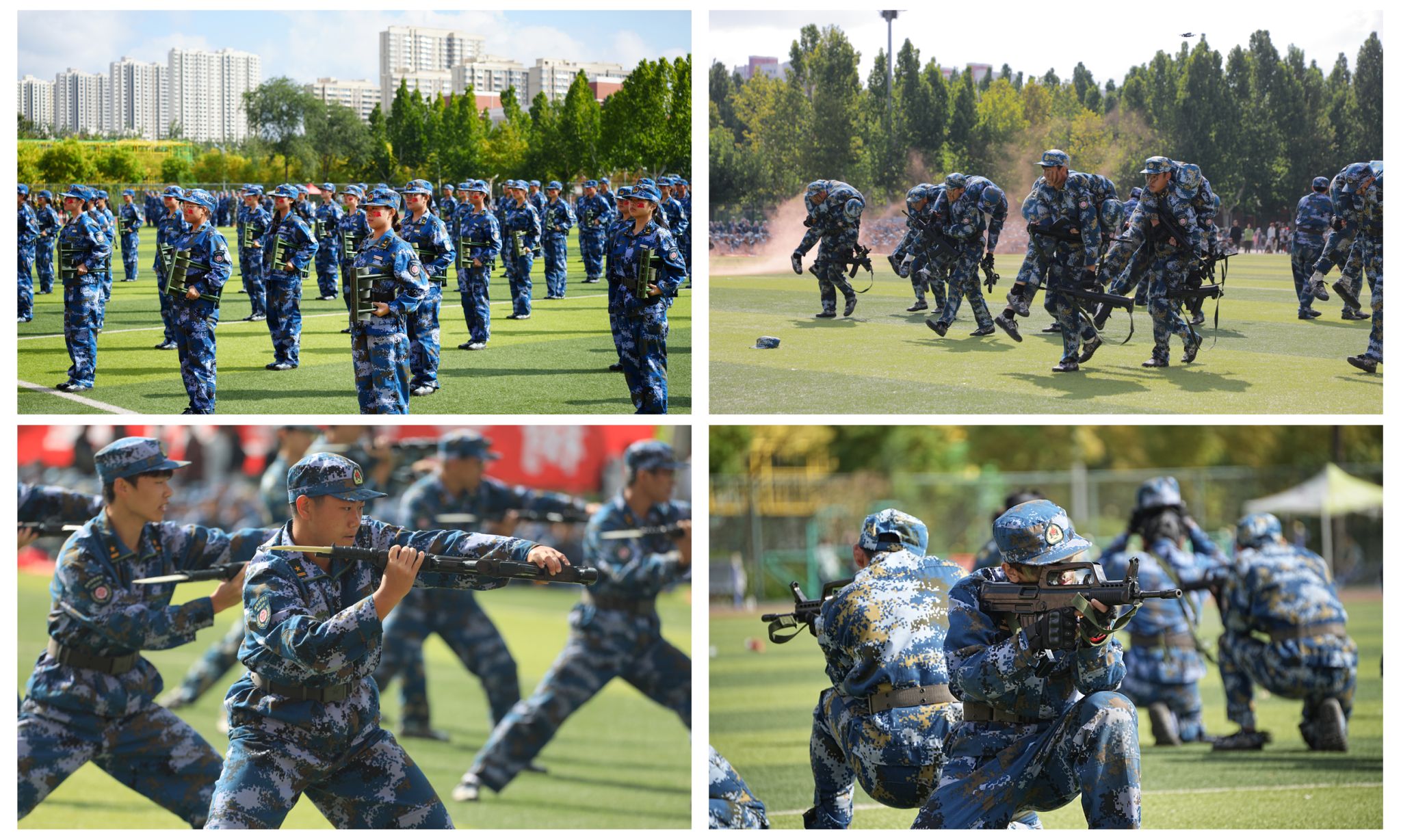 随后,依次进行武术表演《烈焰华章》、养成方队、刺杀操、擒敌拳、匕首操、综合战术及战场救护等军训科目的汇演,同学们目光坚毅,口号嘹亮,精神抖擞,气宇轩昂,散发着青春的活力,既展示了努力训练的成果,也彰显出“新一代”师院人的自信与骄傲。