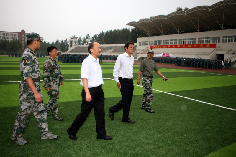 9月6日上午,校党委书记王玉华、副校长王海一行来到章丘校区运动场军训场地,看望军训师生和教官并指导军训工作。