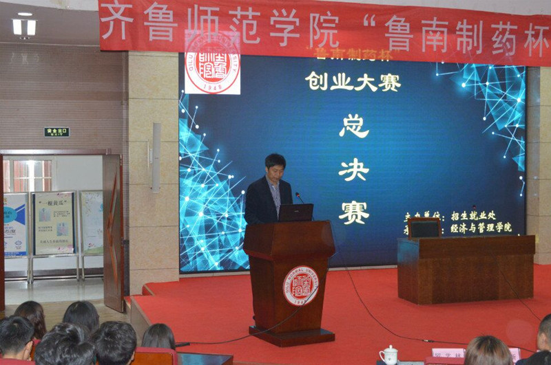 10月26日下午,首届37000cm威尼斯“鲁南制药杯”创业大赛总决赛在图书馆学术报告厅举行,副校长张福建出席决赛现场并致开幕词,招生就业指导处处长邱中华、经济与管理学院党总支书记蔡平胜参加活动。