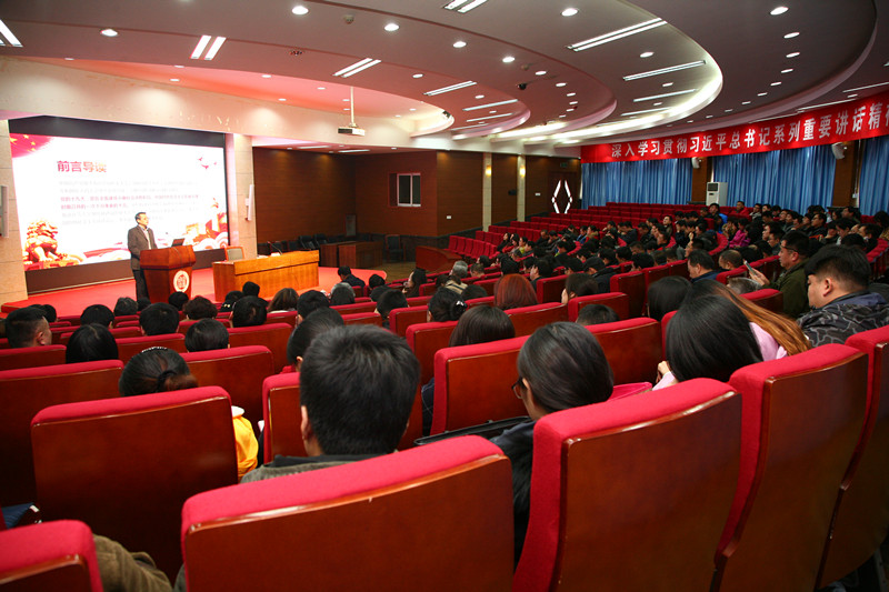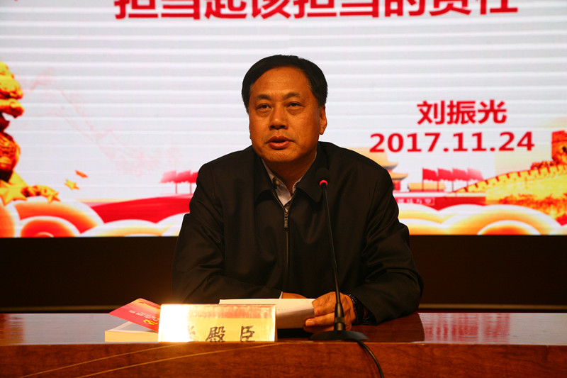 全省高校宣讲团成员、马克思主义学院院长刘振光教授做了题为“以十九大精神为指导,担当起该担当的责任”的党的十九大专题辅导报告。他从十九大报告中以及习近平总书记有关责任与担当的论述入手,论述了何谓责任,何谓担当,阐述了新时代党员如何做到心怀责任、勇于担当,着重指出新时代党员干部要勇于责任担当,要坚持原则、认真负责,要率先垂范、爱岗敬业;面对新时代赋予的伟大使命,要把对党忠诚、为党分忧、为党尽职、为民造福作为根本政治担当,要以培养担当民族复兴大任的时代新人为着眼点立德树人,对学习落实十九大精神有很好的启发性和指导性。