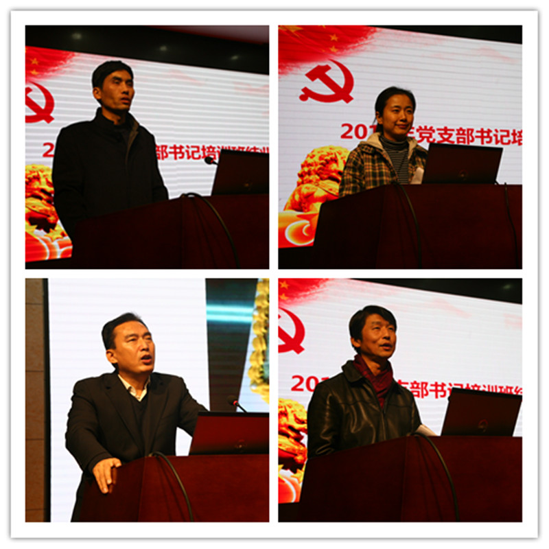 结业仪式还进行了大会交流发言。文学院教工党支部书记王来迎、美术学院学生党支部书记梅茹、生物科学学院党总支书记马维军、机关党委宣传统战党支部书记宋新刚4位同志结合自身学习、工作和培训心得,从党的十九大精神的学习体会,工作实践中对如何加强基层党建工作,发挥党支部战斗堡垒作用的认识理解等方面进行了交流发言。
