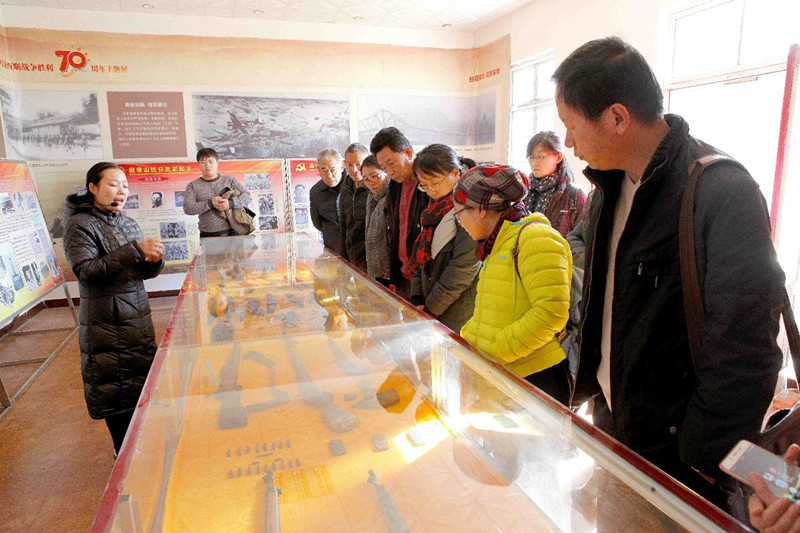 泰安徂徕山抗日武装起义博物馆是以磨山峪抗日旧址为基础,兴建起的一处进行革命优良传统教育和爱国主义教育的红色文化教育基地。博物馆坐落于泰安市岱岳区徂徕山南麓。现已建成占地面积19800平方米的多功能展厅、教育培训室、文物藏品库房等博物馆主体及配套设施。博物馆陈列展览按照尊重历史、再现历史的原则,重点展示了1938年1月1日由中共山东省委直接领导的徂徕山抗日武装起义、打响了山东人民抗战第一枪的伟大壮举;展示了罗荣桓元帅当年率领115师浴血奋战的抗战历程及山东抗日根据地创建巩固发展的历史,弘扬了徂徕山起义精神。在场馆解说人员的引导下,统战成员们首先观看了介绍徂徕山抗日武装起义的纪录片,随后大家怀着对历史和革命前辈的深深敬意,参观了室内展厅,瞻仰了先烈们的光荣事迹和革命遗物。展厅里一幅幅历史照片,一件件革命遗物,一幕幕革命战士带领当地人民群众同侵略者浴血奋战、英勇不屈的情景,深深感染和鼓舞着每一个人,大家参观完都表示深受感动和教育。