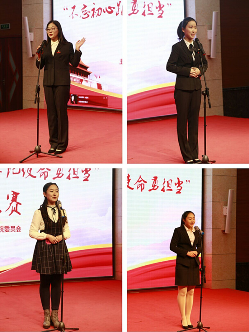 为深入学习宣传贯彻党的十九大精神,教育和引导学生进一步坚定理想信念,11月29日下午由团委主办的“不忘初心跟党走,牢记使命勇担当”演讲比赛决赛在章丘校区学术报告厅举行。校党委宣传部、团委负责人,各学院团总支书记、教师及学生代表300余人观看了比赛。