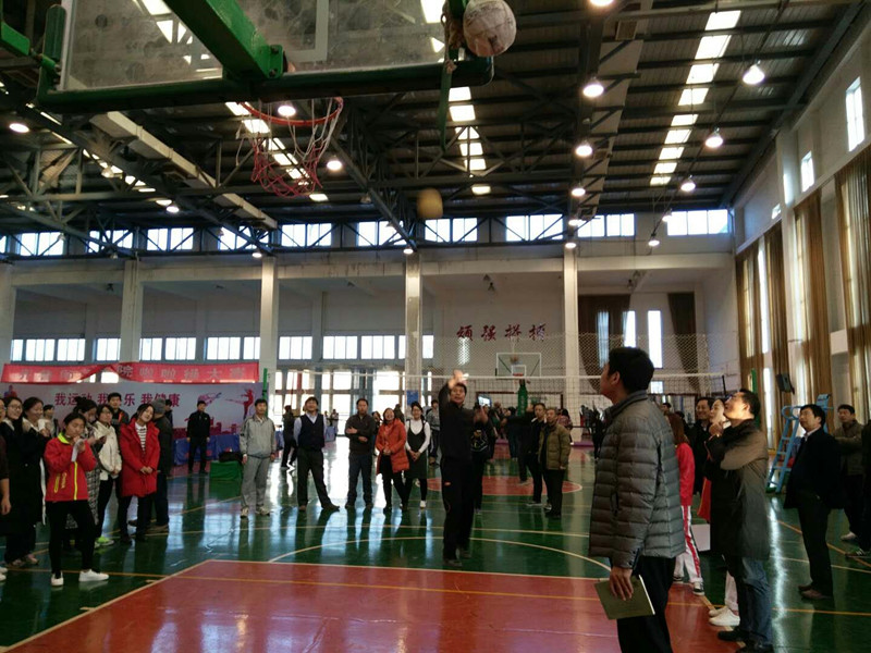 本次比赛,设跳长绳、跳绳接力、踢毽子、托球跑、定点投篮、齐心协力等6个集体项目,全校17个部门工会约200余名教职工参加了此次活动。