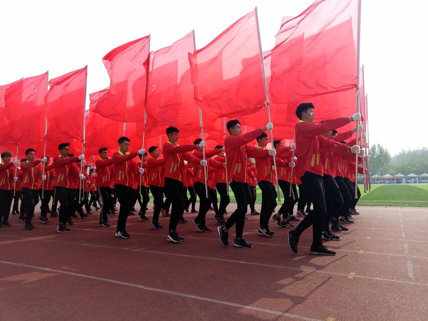 伴随着《运动员进行曲》的音乐奏响,国旗队护送着鲜艳的五星红旗庄严入场,紧随国旗队的是裁判员方阵和彩旗队。随后,学生代表队、教职工代表队迈着矫健的步伐依次走过主席台,纷纷向大家展示他们的英姿勃发。伴着铿锵的节奏,他们自信满满、朝气蓬勃,迈着整齐的步伐走过操场,喊着高亢嘹亮的口号接受着主席台的检阅。各代表队就位后,举行了庄严的升国旗、唱国歌仪式。