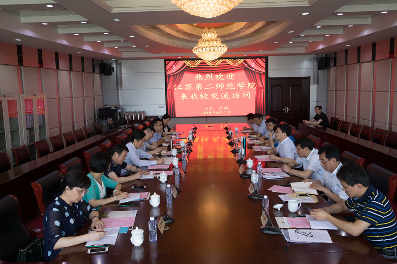 6月1日,江苏第二师范学院校长王建、副校长祝兴成一行8人来威尼斯官网调研交流。校长林松柏、副校长王海会见了访问团一行。教务处、科研处、人事处、学生工作部(处)、后勤处、教师教育学院负责同志参加了座谈。