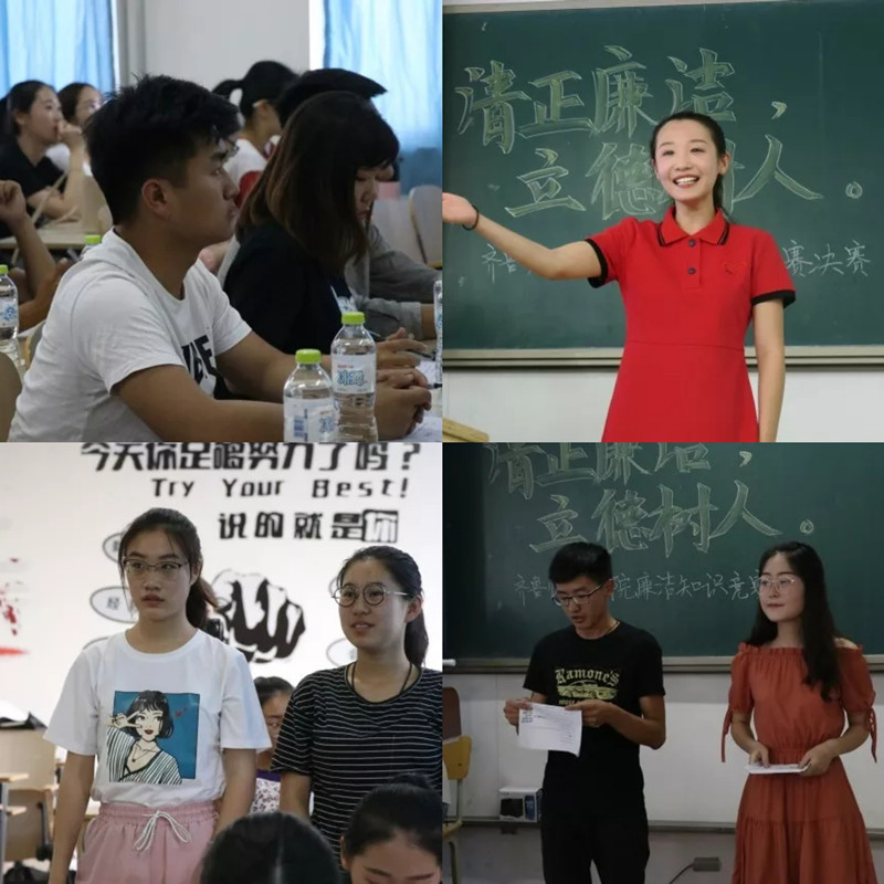 为把廉洁教育与青年学生思想道德建设相结合,举行“清正廉洁,立德树人”廉洁知识竞赛,组织学生学习反腐倡廉相关知识,强化大学生廉洁修身意识。其中,网上答题活动有5000余名同学参与答题,现场答题活动中,各学院学生代表参加比赛,完成选择题、判断题、风险题三个部分。参赛选手们凭借精彩的临场发挥,将真挚情感融入到题目中,展现了积极向上的人生态度。