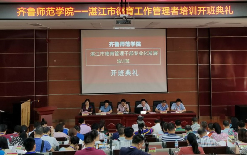 6月27日上午,湛江市德育工作管理干部专业化发展培训班在济南开班,学校继续教育学院院长邱忠华教授、副院长张英梅教授、广东省湛江市教育局刘绍群处长、思政科科长黄良业、济南市历下区甸柳一中校长袁瀛、广东德诚科教主任吴耿森以及来自湛江市的56名德育干部出席了开班典礼。开班典礼由张英梅主持。