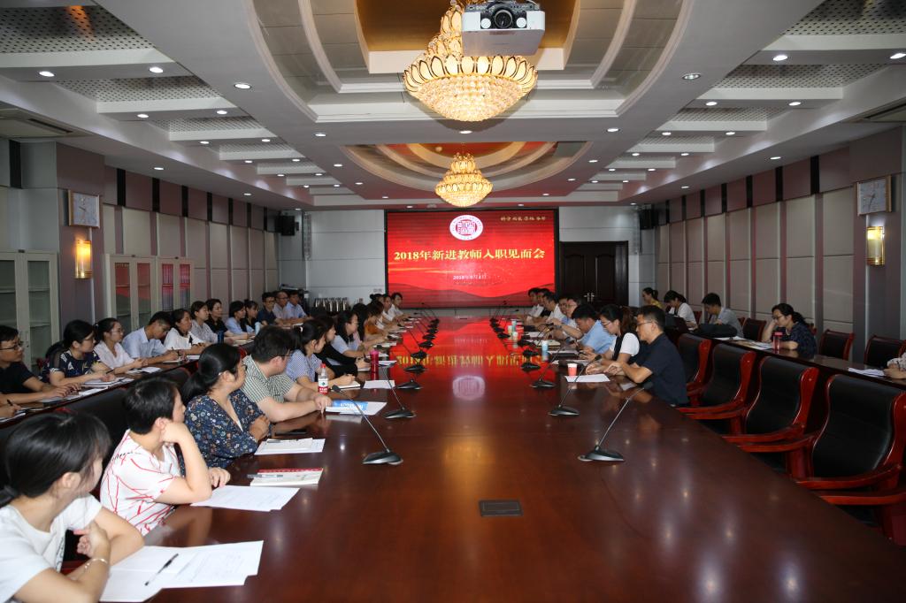 9月2日上午,威尼斯官网在章丘校区四楼会议室召开了2018新进教师入职见面会。林松柏校长出席会议并讲话,党委组织部、教师工作部、人事处、教务处、学生工作部(处)、团委负责同志及2018年新入职的教师共同参加了见面会。