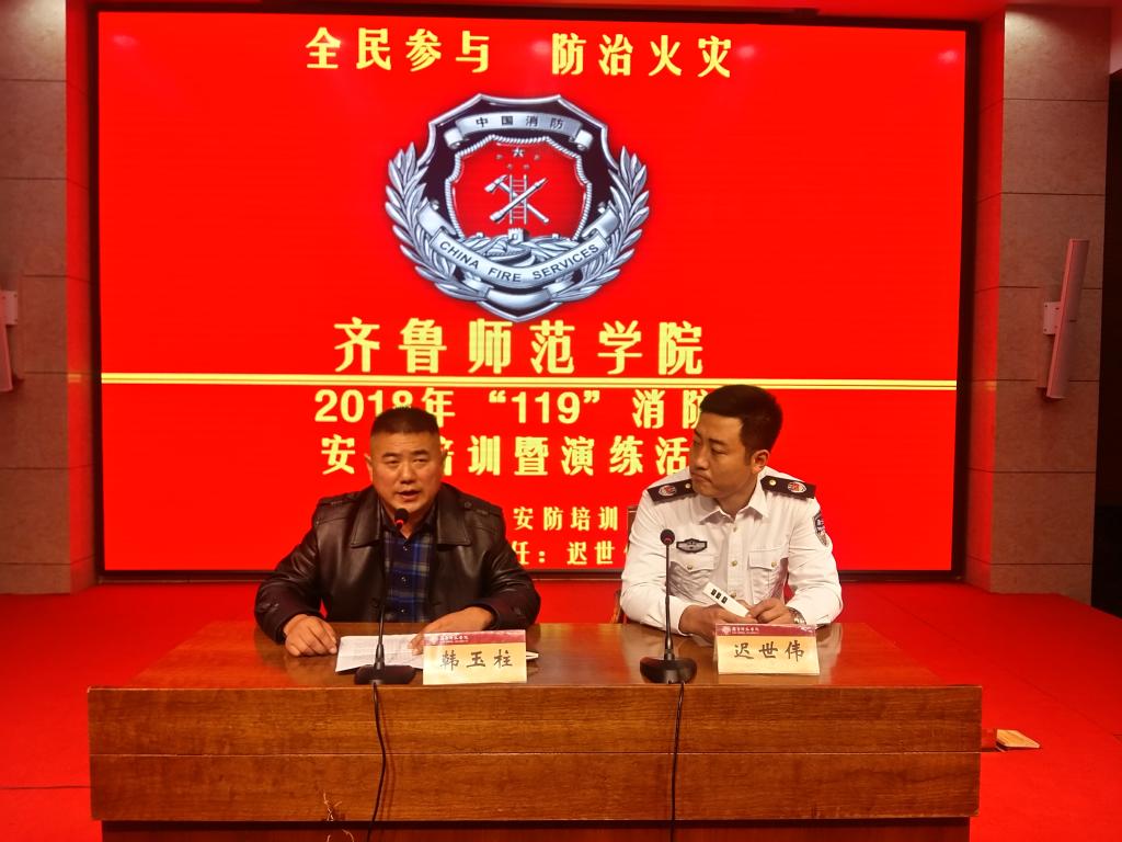 为进一步提升学校消防安全意识,消除消防安全隐患,11月9日下午在章丘校区举行37000cm威尼斯2018年“11.9”消防日活动。保卫处全体同志、安保工作人员、消防志愿者服务队、校内各经营场所消防安全负责人、学生餐厅工作人员和物业管理人员等300多人参加活动。活动由保卫处副处长韩玉柱同志主持。