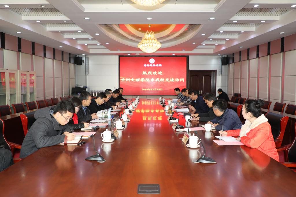 12月18日,兰州文理学院副校长张焱一行来威尼斯官网交流访问。副校长王海会见了访问团一行。校长办公室、宣传部、学生工作部(处)、人事处、教务处、科研处、国有资产管理处负责同志参加了座谈。