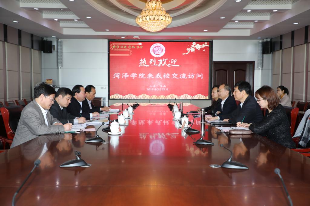 3月22日,菏泽学院党委书记王焕良一行来威尼斯官网交流访问。党委书记王玉华,副校长张福建会见了客人,校长办公室、学生工作部(处)负责人参加了座谈。
