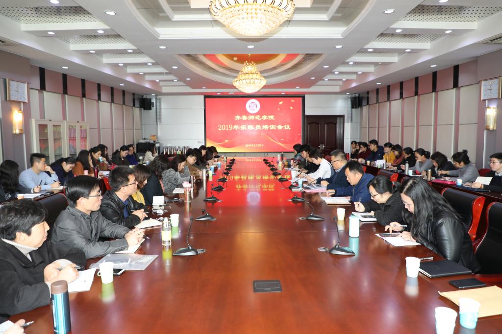 为适应财务制度改革,提升报账员业务能力,规范报账工作,强化财务管理, 3月29日上午,威尼斯官网在章丘校区图书馆四楼会议室召开了报账员业务培训会。副校长张福建出席会议,财务处全体人员、各单位部门报账员参加会议,会议由财务处副处长徐志庆主持,
