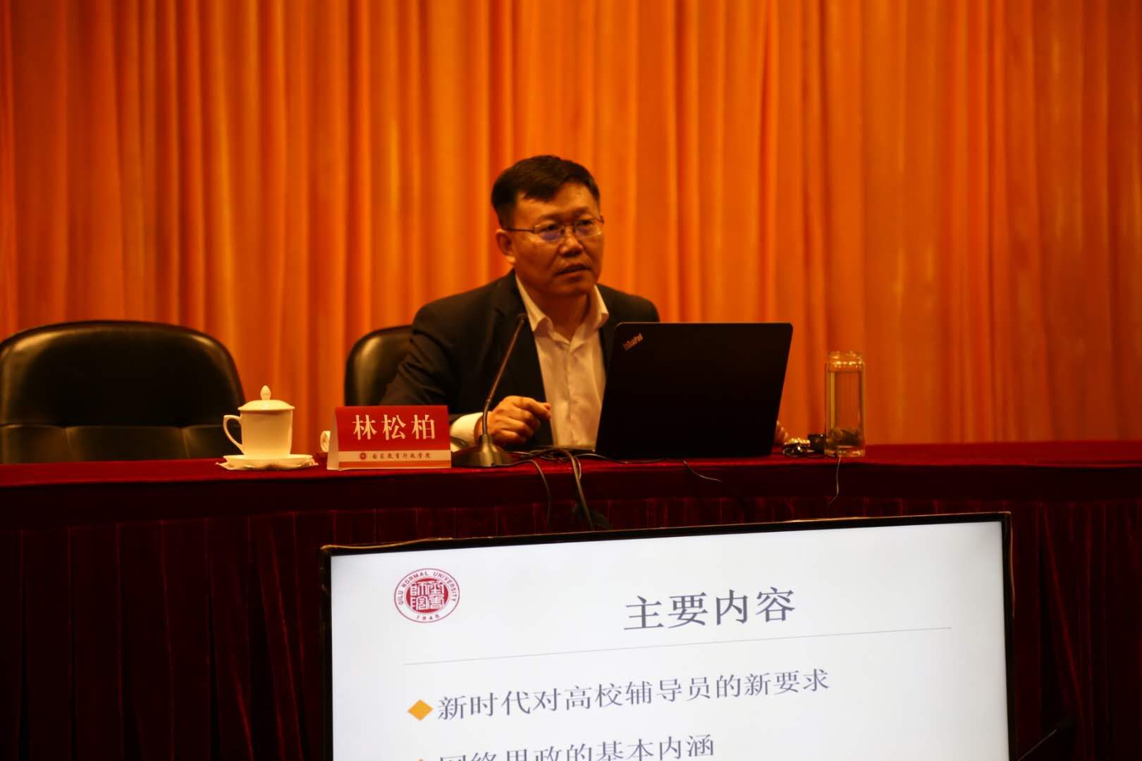 为深入学习习近平新时代中国特色社会主义思想,贯彻落实全国教育大会和全国高校思想政治工作会议精神,进一步推动高校辅导员队伍专业化职业化建设,5月6日,由教育部举办的第一期高校辅导员素质能力提升培训班在北京国家教育行政学院举行。来自全国各高校学工部(处)相关负责人、院系党委(党总支)副书记、辅导员等三百余人参加培训。5月7日上午,威尼斯官网党委副书记、校长林松柏应邀为培训班作专题报告。