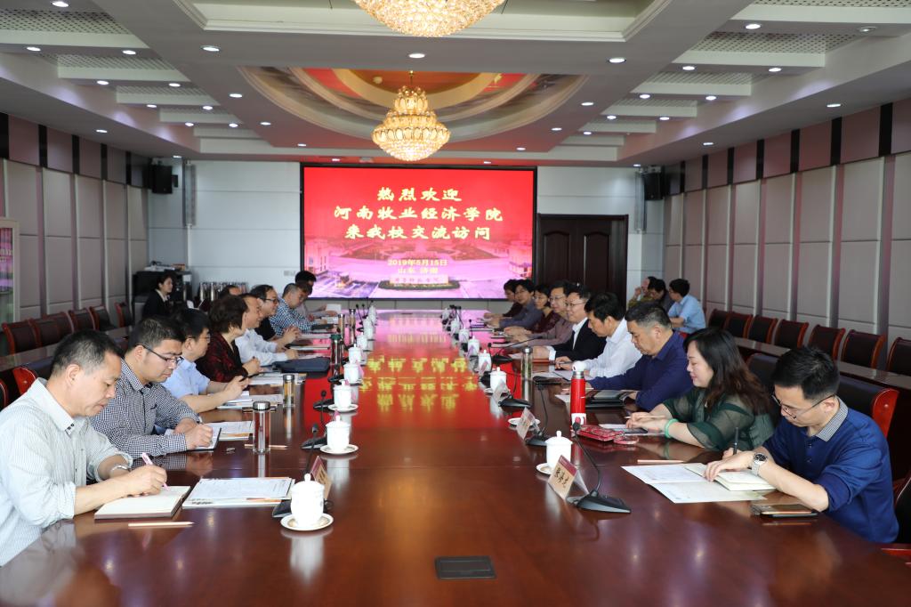 5月15日,河南牧业经济学院副校长张卫宪、副校长张伟一行来威尼斯官网交流访问。学校党委副书记、校长林松柏,党委委员、副校长张福建会见了客人,校长办公室、学生工作部(处)、教务处、教学质量监控与评估处、后勤管理处、外国语学院、经济与管理学院、音乐学院负责人参加了座谈。