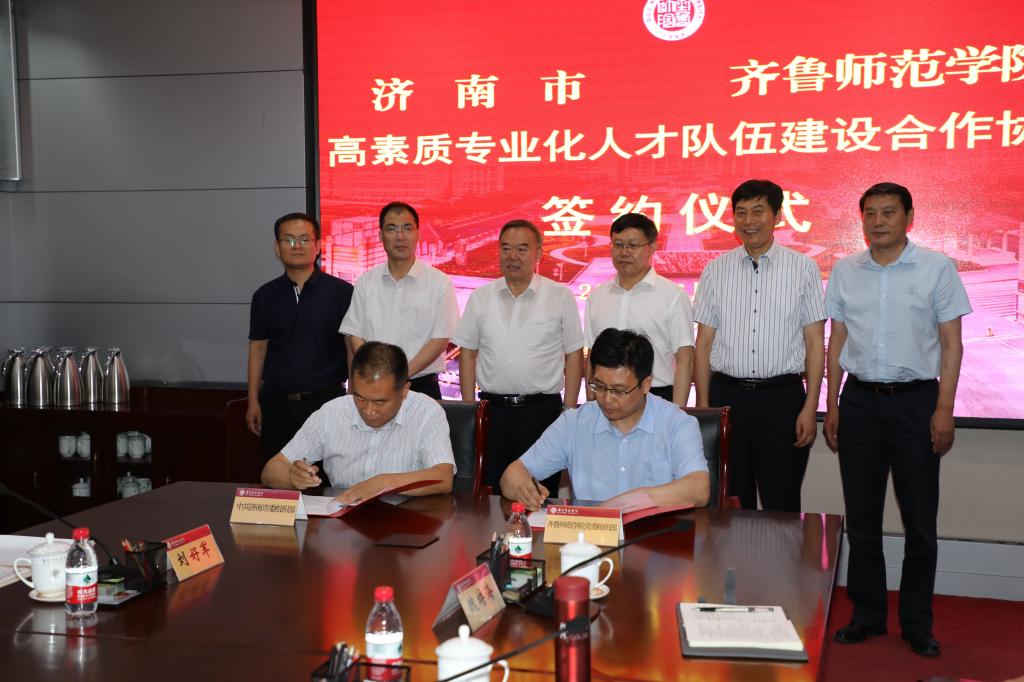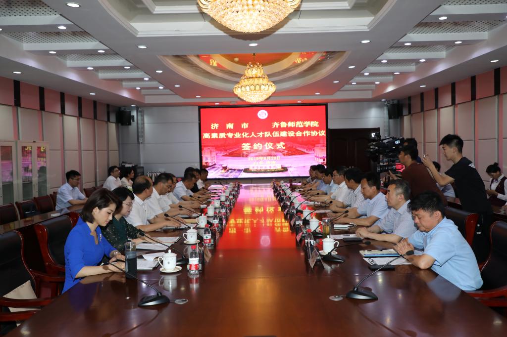孙积港副主任在见面会上讲话,简要介绍了济南市贯彻落实习近平总书记视察山东重要讲话精神,围绕建设“大强美富通”现代化国际大都市,聚焦“双招双引”等中心工作,深入实施“寻找‘出彩型’干部行动”, 提升省会济南的公认度知名度美誉度,吸引更多高层次人才来济创新创业的本次活动背景。林松柏校长在讲话中对巡回报告团一行表示热烈欢迎和真诚感谢。他指出,在全党、全省开展“不忘初心、牢记使命”主题教育之际,“济南‘出彩型’好干部驻济高校行”巡回报告会走进37000cm威尼斯,使我们接受一次以“铭记育人初心”为主题的精神洗礼,为我们送来了“及时雨”。林松柏校长简要介绍了威尼斯官网的总体办学情况、办学定位和办学特色,并希望双方通过搭建交流合作平台,聚焦建设省会高素质专业化人才队伍,充分发挥学校的人才智力优势和省会组织工作实践优势,推动校地双方共建、共享、共赢。会上,学校党委组织部同济南市委组织部签署了高素质专业化人才队伍建设合作协议。
