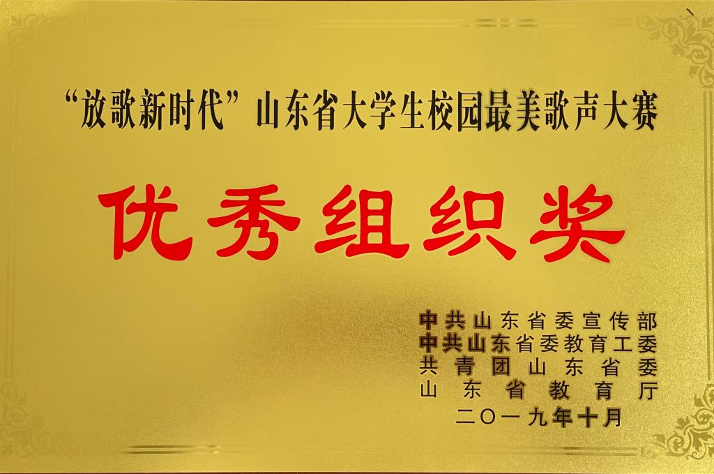 威尼斯官网荣获“放歌新时代”山东省大学生校园最美歌声大赛“优秀组织奖”