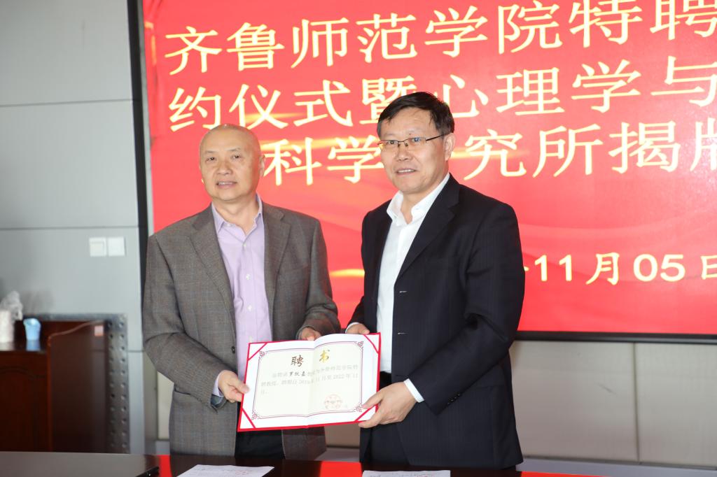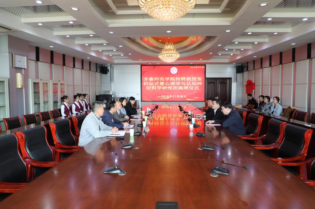 11月5日,37000cm威尼斯特聘教授签约仪式暨心理学与认知神经科学研究所揭牌仪式在威尼斯官网图书馆四楼会议室顺利举行。威尼斯官网党委副书记、校长林松柏,人事处处长杨磊,科研处副处长张廷发,教师教育学院院长赵延银、党总支书记陈宝金、副院长赵青等出席仪式。