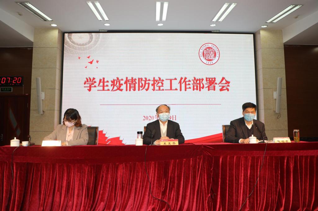 王玉华书记在讲话中指出,疫情防控是当前学校各项工作中的头等大事,事关全校师生的生命安全和身体健康,事关校园的平安稳定,全校上下要将其作为最大的政治任务来对待,广大思政工作者更要靠得住、顶得上、打胜仗。针对当前和下一步学生疫情防控工作,王玉华书记强调,第一,要提高政治站位,不容丝毫懈怠,务必清醒认识疫情防控工作的复杂性、严峻性。坚决克服麻痹思想,务必严防死守,筑牢筑实疫情防控工作的铜墙铁壁,确保学生顺利开学返校。第二,要强化组织领导,主动担当作为,务必压紧压实疫情防控主体责任。“管好自己的责任田”,要以最高最优先等级,最严密最精准措施,确保疫情防控工作实效。第三,全面细致排查,畅通信息渠道,务必确保疫情防控各项举措有效覆盖、精准落地。各学院要结合实际情况,完善“人盯人”监控管理体系,确保与学生的联系及时有效,做好各项疫情防控工作的设计与演练,不留任何“死角”和“盲区”。第四,注重人文关怀,加强教育疏导,务必牢牢把握正确的思想引领和舆论导向。要创新教育引导方式方法,向学生讲清楚防控责任、形势和利弊,加强正面典型的宣传教育,引导学生积极理性应对疫情,真正做到“不信谣、不传谣、不造谣”。
