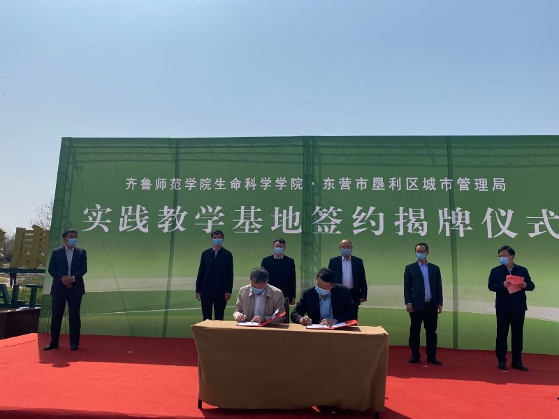 最后,李师鹏与宋金生分别代表生命科学学院和垦利区城市管理局签订了合作协议书,林松柏与刘斯杰共同为“实践教学基地”揭牌。