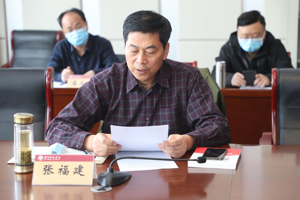 会上,林松柏校长传达4月17日中共中央政治局会议精神,领学习近平总书记给参与“东方红一号”任务的老科学家的回信;刘宝君副书记领学《党委(党组)落实全面从严治党主体责任规定》,传达省委2020年意识形态和宣传思想工作要点;刘德增副校长传达中共山东省委、省人民政府关于印发《全省“重点工作攻坚年”重点任务实施方案》的通知;张福建副校长传达刘家义同志在全省高等学校高质量发展座谈会上的讲话;王海副校长传达刘家义同志在开学复课专题调度会议上的讲话;纪委副书记于绍军传达陈辐宽同志在中央纪委全会精神专题辅导班上的讲话。