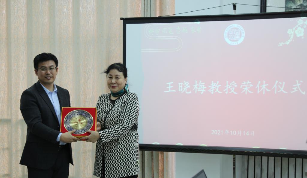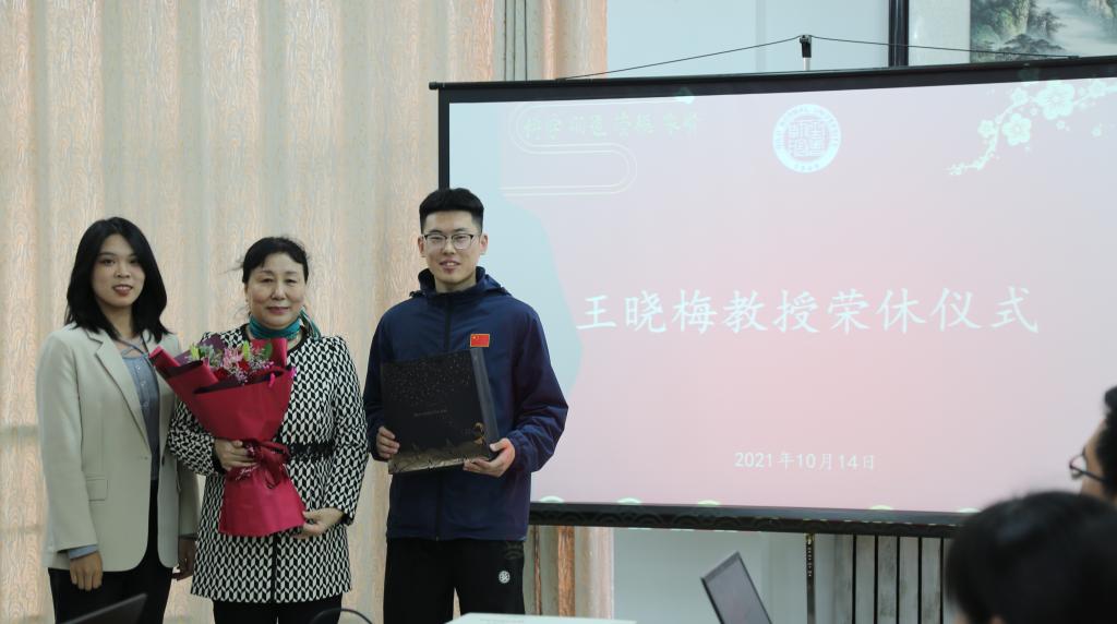 荣休仪式上,李伯伟为王晓梅教授颁发了荣休纪念章。学生代表向王晓梅教授献花,并送上了精心挑选饱含师生情谊的纪念礼物。