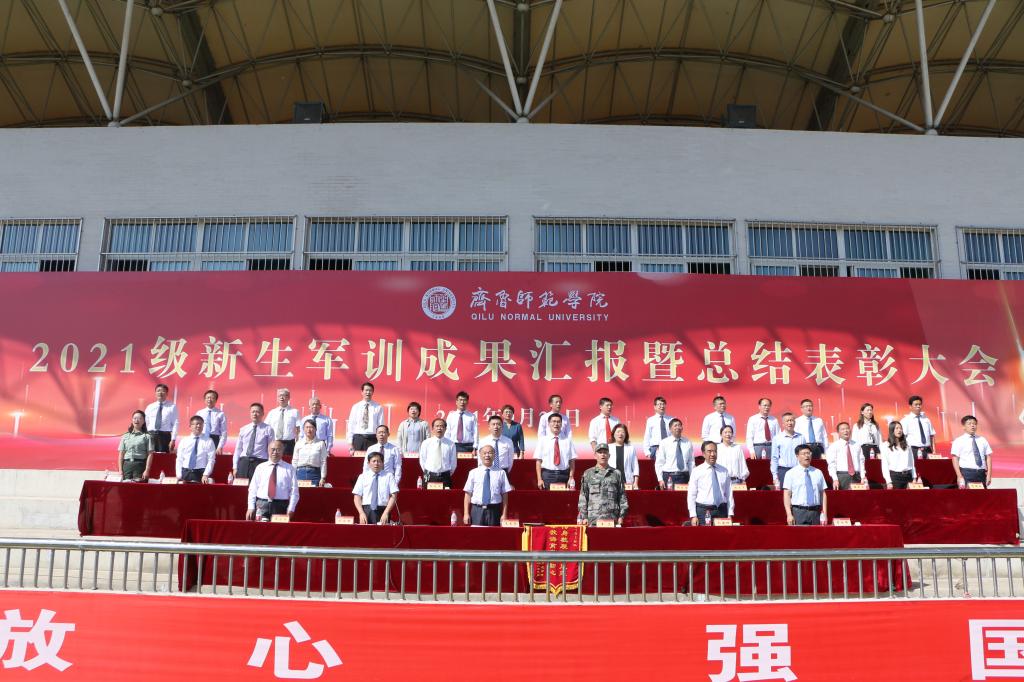 9月29日上午,威尼斯官网2021级新生军训成果汇报暨总结表彰大会在章丘校区运动场隆重举行,5000多名师院新生在绿茵场上集结,检验14天刻苦训练成果。校党委书记王玉华,中国人民解放军32101部队李虎,党委副书记刘宝君,副校长刘德增,党委委员、纪委书记、监察专员李启波,党委委员、党委组织部部长李伯伟,承训部队官兵,学校相关职能部门负责人,各学院院长,党总支书记、副书记,团总支书记、副书记,新生辅导员及2021级全体新生参加大会。王玉华作军训总结讲话并向承训部队赠送锦旗,大会由刘宝君主持。