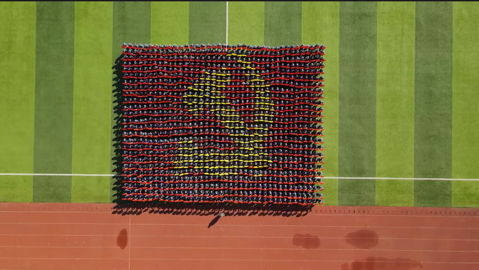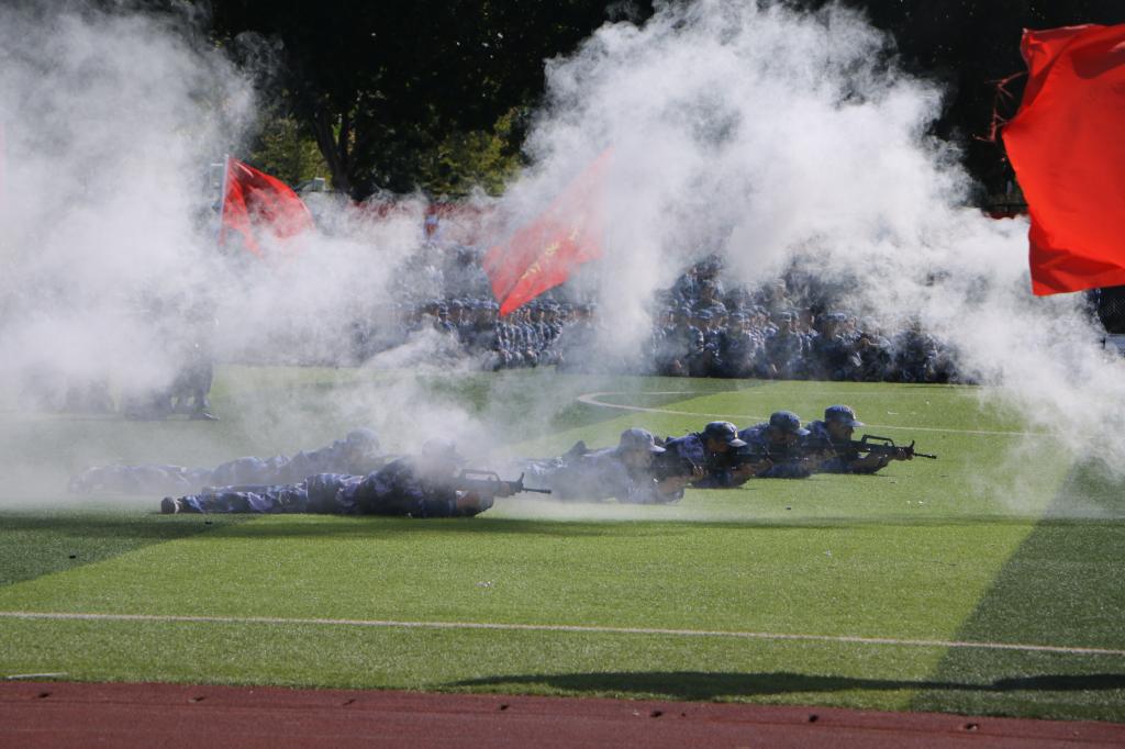 歌声嘹亮,国旗飘扬,大会在雄壮的国歌声中拉开帷幕。学生军训团17个方阵依次经过主席台,接受检阅。他们队列整齐划一、步伐铿锵有力、口号气势磅礴,展现了威尼斯官网青年学子朝气蓬勃、斗志昂扬、奋发有为的精神面貌。日常养成训练军容严整、军姿飒爽、动作规范;卧倒、滚翻、搜索前进等单兵技能,掩护配合、攻防兼备的班组战术,不仅是同学们自身技能的训练,更是对团队配合的磨练和血性意志的锤炼;红黄彩旗挥舞,现代战争中的讯息得以传递,同学们精神昂扬、默契十足,用“旗语操”表达出对军事知识的掌握和良好的团队协作意识;拳打、脚踢、摔打、夺刀、夺枪……“军体拳”培养了同学们阳刚气质、顽强意志、强健体魄和过人胆识,是对矢志不渝的战斗精神和对国家忠诚信念的体现;青春的旋律、欢快的舞曲、矫健的步伐、优美的动作,“手语操”展示着师院学子青春洋溢、勃勃生机的精神面貌;“我爱师院”“伟大的中国共产党万岁”“伟大的祖国万岁”“请党放心、强国有我”……伴随着响亮的口号声,1000名学生用手中的花环摆出了“I爱QLNU”“1921-2021”“100”、党徽、国旗等图案字样。拳拳爱国志,殷殷赤子心,全体新生以实际行动表达对学校的爱,对党和国家的感恩与祝福,向中国共产党成立100周年献礼。