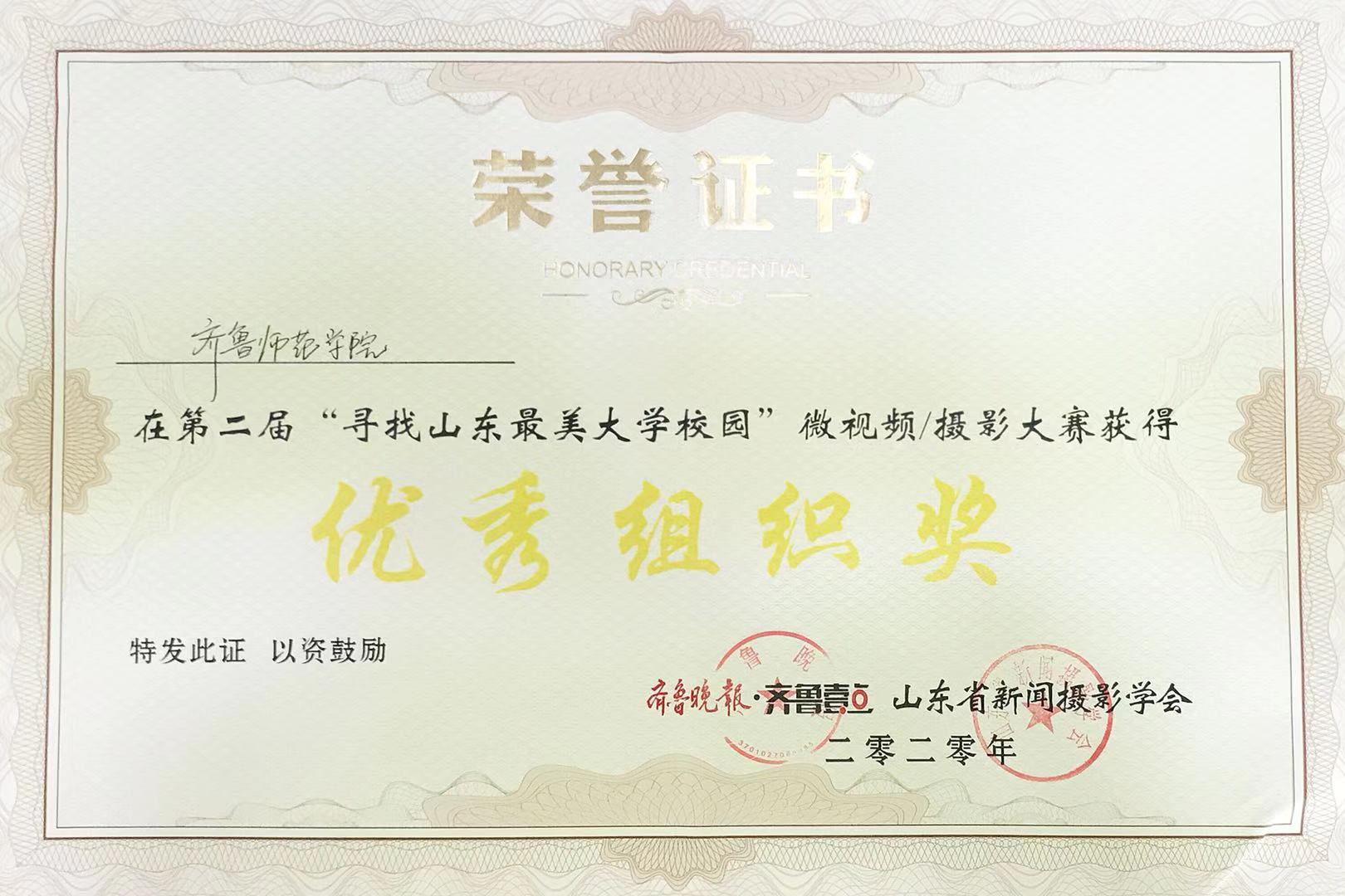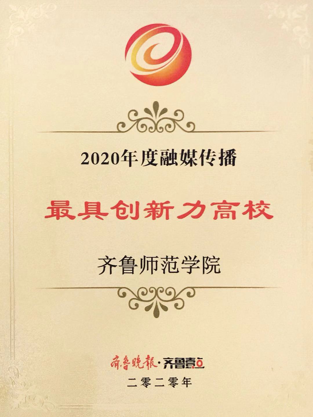 此外,威尼斯官网还荣获齐鲁晚报﹒齐鲁壹点颁发的“2020年度融媒传播最具创新力高校”和第二届“寻找山东最美大学校园”微视频/摄影大赛优秀组织奖。