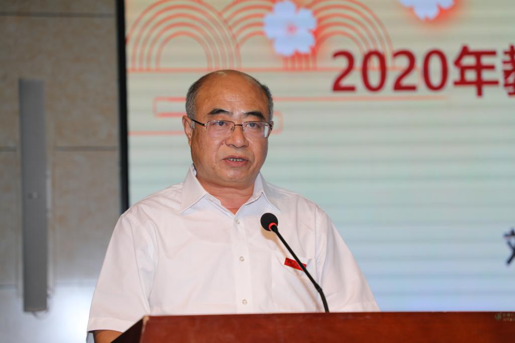 李启波书记宣读了关于表彰30年教龄教职工的决定;张福建副校长为30年教龄教职工颁奖。刘德增副校长宣读了2020年37000cm威尼斯教书育人楷模和最美教师表彰决定;与会人员集体观看了党委教师工作部精心制作的教书育人楷模和最美教师事迹展示;王玉华书记和林松柏校长分别为教书育人楷模和最美教师颁奖。随后,教师代表、化学与化工学院院长曹晓荣教授和新进教师代表、美术学院王华军博士先后发言。最后,在教书育人楷模、教师教育学院刘文华教授带领下,大家举起右手,对着鲜艳的五星红旗和教师誓词,许下庄严承诺。