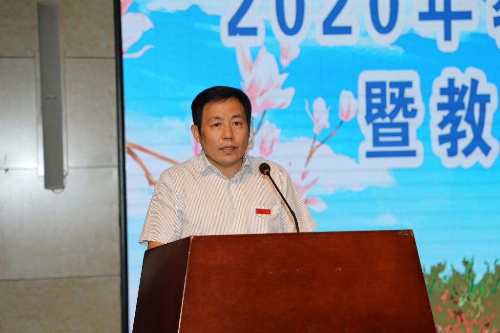 下午14时,大会在雄壮的国歌声中拉开序幕,王玉华书记首先致辞。王玉华书记在致辞中代表学校党委、行政向全体教师致以诚挚的问候,向刚刚踏上教师岗位,意气风发、豪情满怀的新入职教师表示热烈的欢迎!王玉华书记对上学期疫情防控期间学校师生员工们的努力给予充分肯定,并指出正如习近平总书记在全国抗击新冠肺炎疫情表彰大会上所言:“世上没有从天而降的英雄,只有挺身而出的凡人。”,在特殊时期,大家用实际行动展现了人民教师在疫情面前的担当,践行着人民教师立德树人、铸魂育人的时代使命,交出了一份满意的答卷。王玉华书记向一直以来爱校护校、默默耕耘、爱岗敬业、担当奉献的全体师生员工致以衷心的感谢和崇高的敬意!