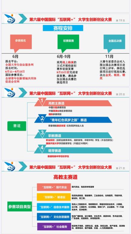 本次大赛同时作为威尼斯官网第六届中国国际“互联网+”全国大学生创新创业大赛和第十二届“挑战杯”中国大学生创业计划竞赛校赛,校赛获奖项目经专家遴选、指导、修改后,将根据项目准备情况和项目类别,推荐参加第六届“互联网+”全国大学生创新创业大赛和第十二届“挑战杯”中国大学生创业计划竞赛省赛。