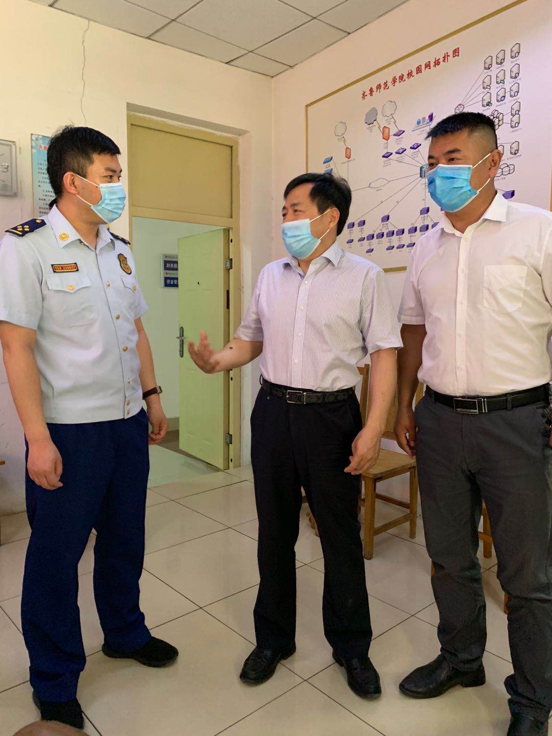 为进一步强化校园消防安全管理工作,切实保障师生员工的生命和财产安全,6月11日上午,济南市章丘区消防大队李超副队长一行3人深入威尼斯官网开展消防安全检查指导工作。