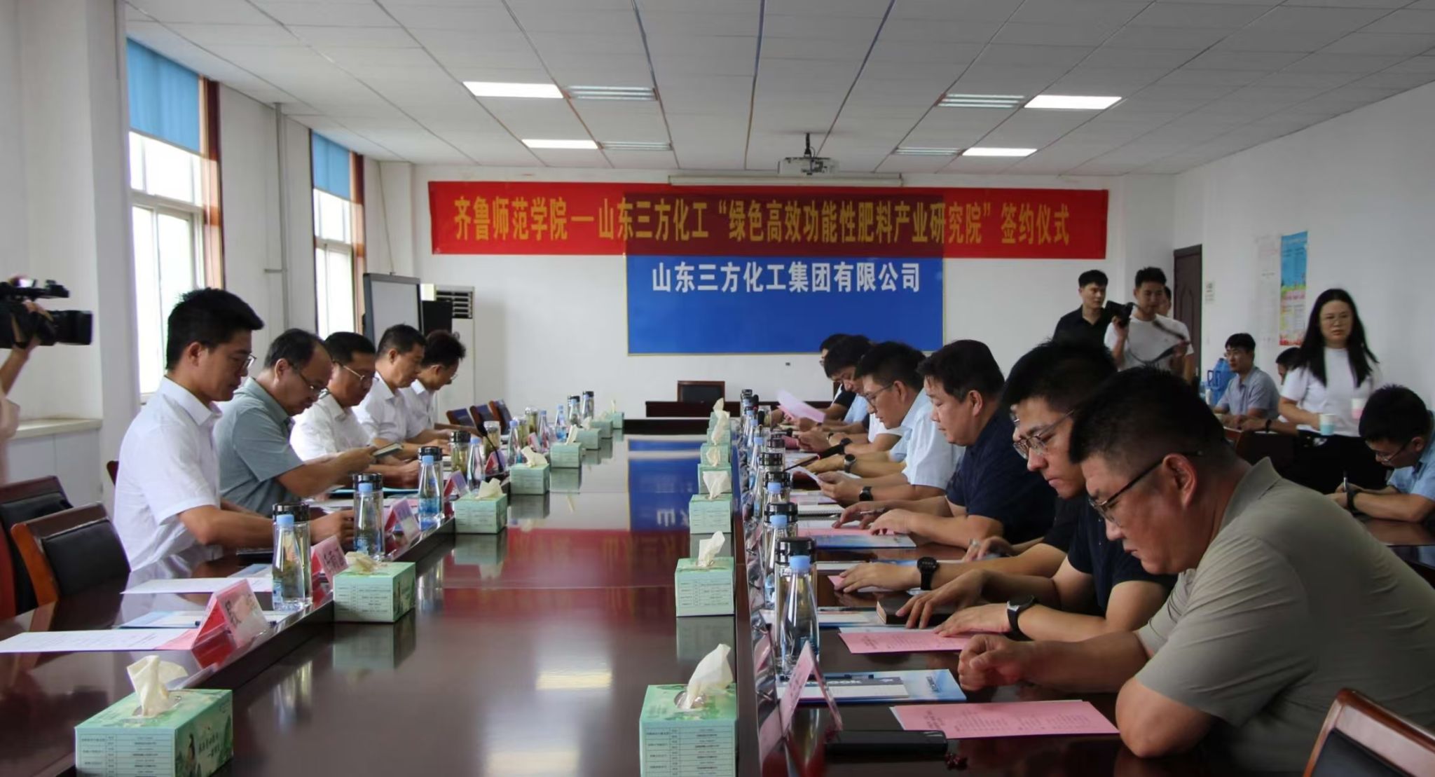 8月23日,学校党委副书记、校长郑秀文一行赴山东三方化工集团有限公司(以下简称三方化工集团)签约共建“绿色高效功能肥料产业研究院”。莒南县委常委、组织部部长张东升,三方化工集团董事长张海涛、总经理张磊,及相关部门负责人参加会议。签约仪式由莒南县副县长朱琳主持。