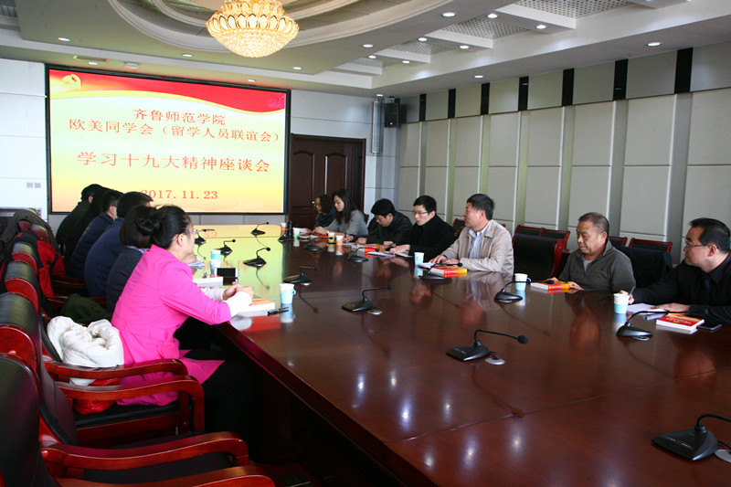 11月23日上午,威尼斯官网欧美同学会(留学人员联谊会)在图书馆四楼会议室举行留学人员学习十九大精神座谈会。座谈会由欧美同学会(留学人员联谊会)会长李师鹏主持。