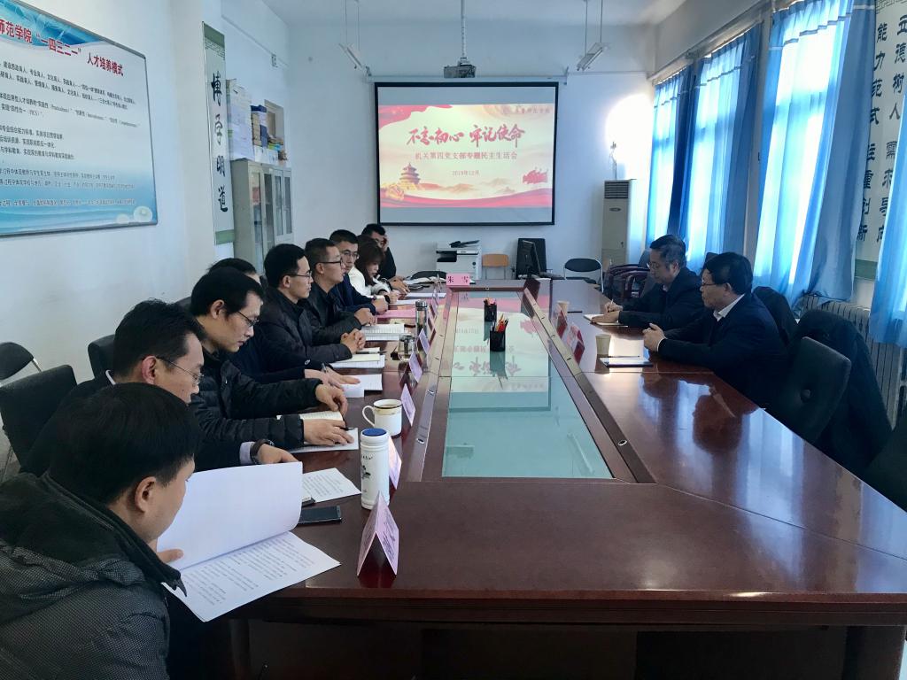 12月9日下午,机关第四党支部(教务处)在1号教学楼B411召开“不忘初心、牢记使命”主题教育专题民主生活会。学校党委副书记、校长林松柏到会指导,学校主题教育督导二组组长、党委统战部部长陈光军到会督查。教务处全体党员参加会议。会议由杜建彬同志主持。
