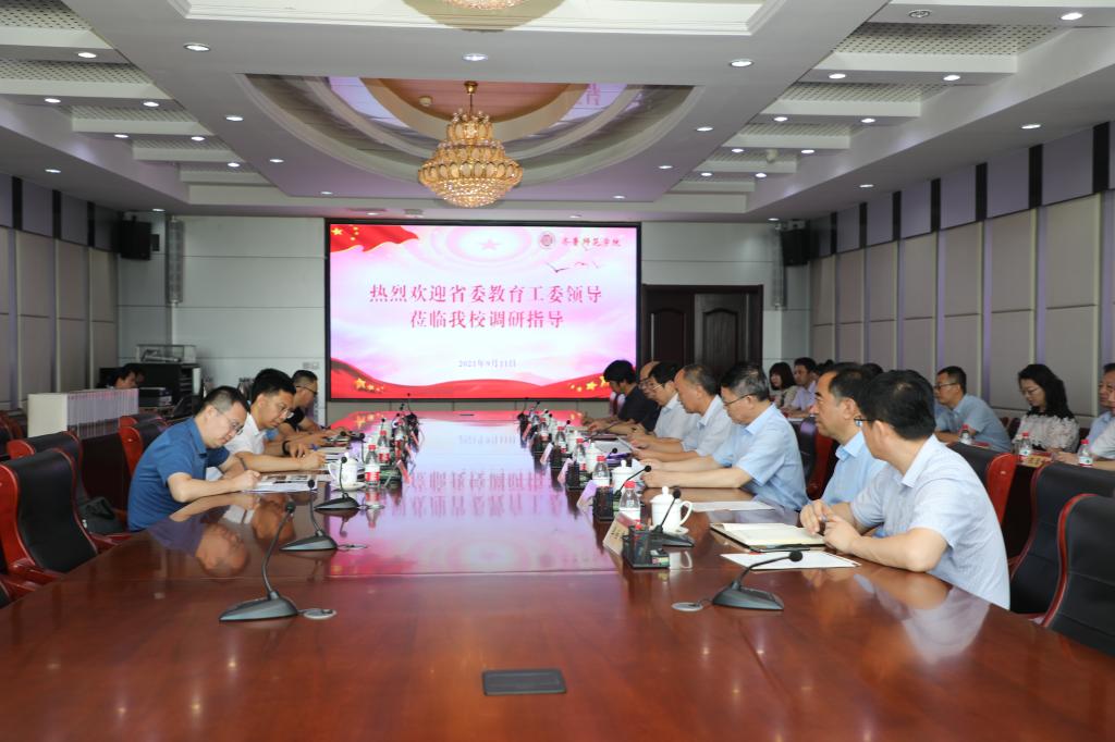调研见面会上,王玉华从学校发展现状、发展进程、取得经验、存在问题、努力方向等5个方面向调研组介绍了党建引领事业发展的基本情况。他指出,学校党委坚持以习近平新时代中国特色社会主义思想为指导,充分发挥党委领导核心作用,坚决贯彻落实习近平总书记关于教育的重要论述,认真落实全面从严治党主体责任,不断探索党建工作与中心工作融合发展路径,在发展过程中学校各项工作都取得了新成效:一是巩固和凝练办学特色,在推动应用型大学建设中创优争先;二是坚持规模内涵协调发展,促进学校办学质量稳步提升;三是坚持以立德树人为根本,以专业建设为重点,培育适应社会需求的应用型人才;四是坚持“整体推进、重点突破”,不断增强学科和科研实力;五是坚持面向全省基础教育,不断提升服务社会的能力水平;六是坚持全面加强党的领导,全面提升党建工作水平,推动学校事业良好发展。他强调,成绩的取得离不开四条经验:一是坚持和全面加强党的领导,是事业发展之本;二是坚持群众路线,是事业发展之源;三是坚持内涵发展,是事业发展之基;四是践行“守正创新”,是事业发展之策。