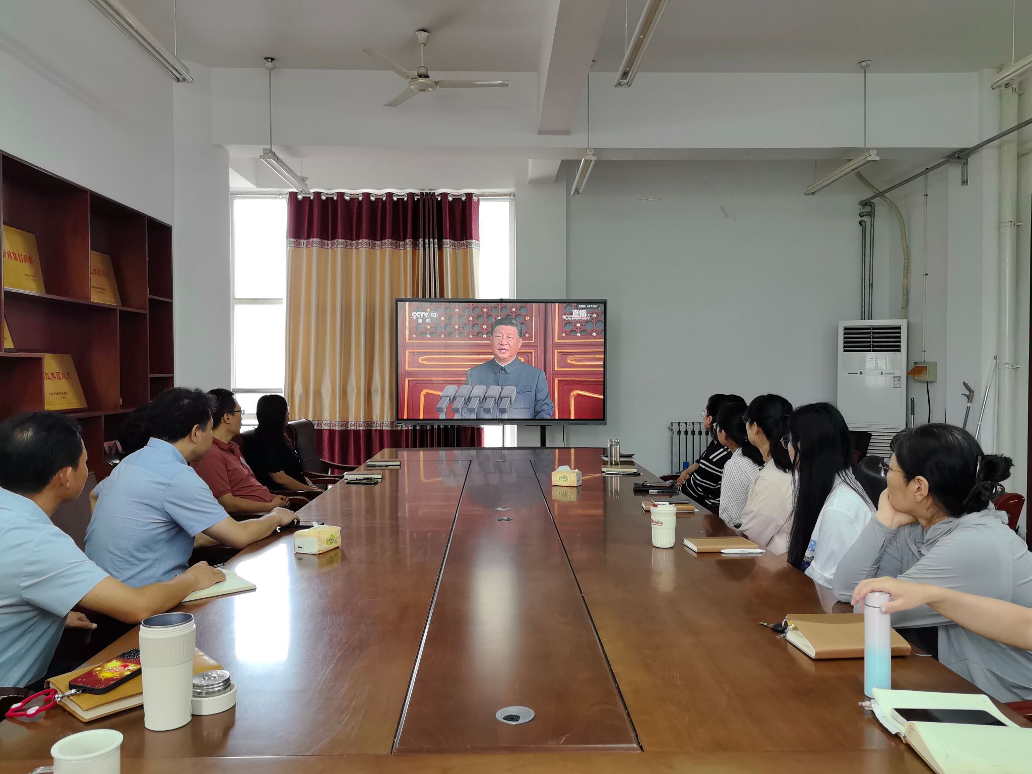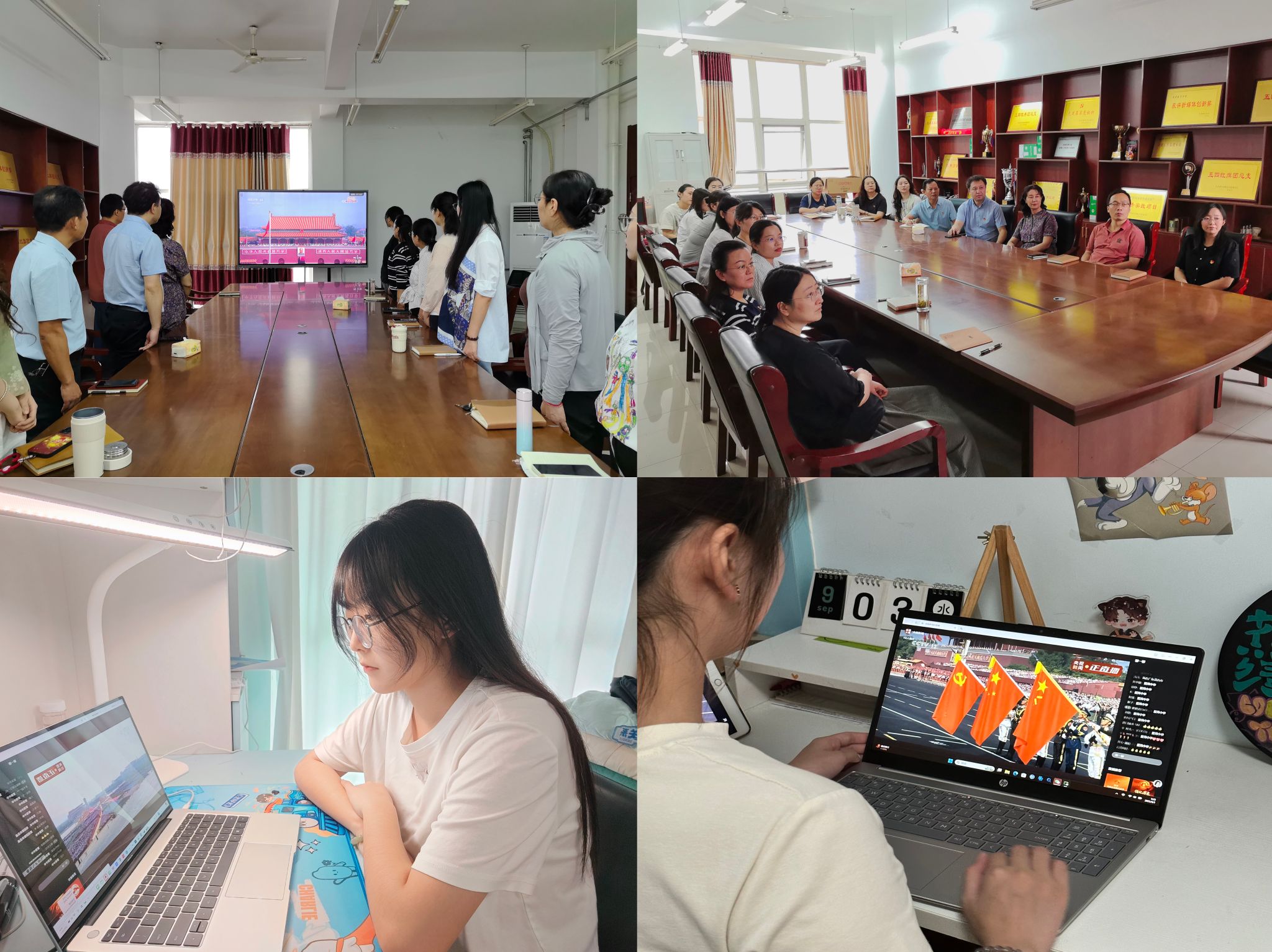学院党委将观看纪念大会、大阅兵,作为党员教育的一项重要内容,组织开展“观盛会、学精神、强作风”主题党日活动。在校师生党员参加集中的组织活动,未能返校的党员通过学院搭建线上支部活动平台参加活动,自行收看直播、参与讨论交流,确保学习教育不缺位、组织生活不断线。