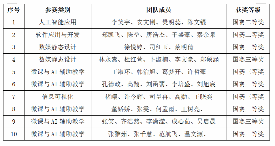 近日,2025年(第18届)中国大学生计算机设计大赛全国总决赛获奖名单揭晓。信息科学与工程学院精心组织、积极备赛,共斩获全国二等奖2项、全国三等奖8项,充分展现了学校在计算机创新应用与人才培养方面的卓越成果。
