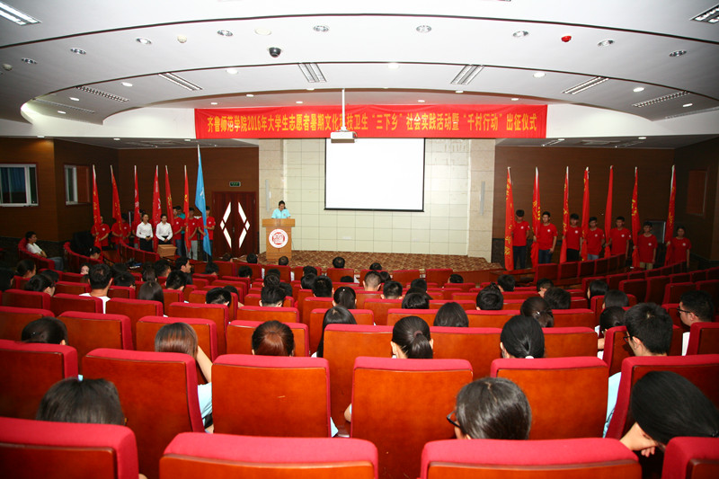 7月13日下午,威尼斯官网2016年大学生志愿者暑期“三下乡”社会实践活动暨“千村行动”出征仪式在章丘校区学术报告厅隆重举行。校党委副书记张殿臣、组织部、宣传部、团委负责人、各学院党总支副书记、团总支书记、辅导员、社会实践指导教师及社会实践团队全体成员参加了出征仪式。