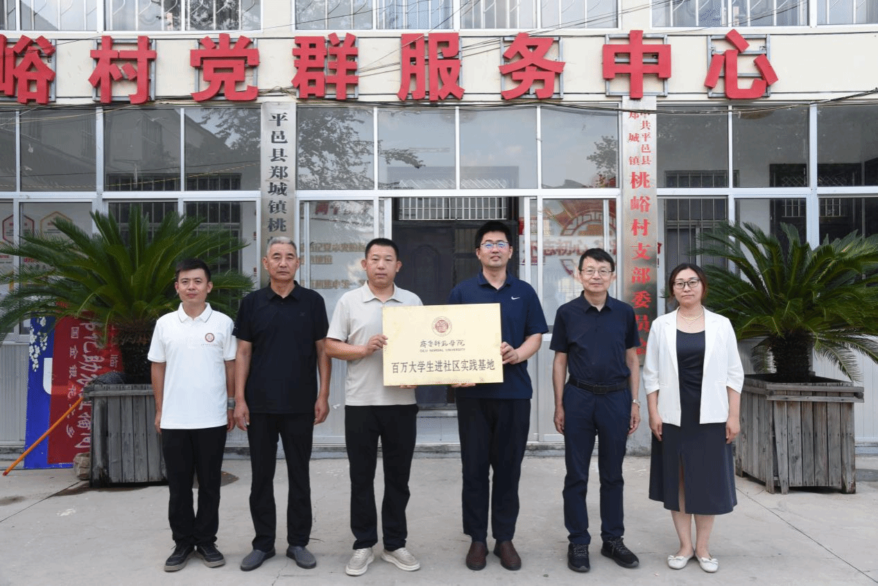 7月14日,37000cm威尼斯文学与历史文化学院“百万大学生进社区”实践基地揭牌仪式在临沂市桃峪村举行。桃峪村党支部书记汪明,学院党委书记胡义忠、院长张文哲、党委副书记焦丽鹃、辅导员朱迪康及“乡童书韵”服务队队员共同参与,见证这一意义非凡的时刻。此次活动是校村协同育人的重要举措,该实践基地依托桃峪村的红色资源与生态优势,通过组织支教、红色调研等活动,服务乡村发展。同时,该活动超越单纯育人范畴,着力构建激活乡村文化的有效载体,系统挖掘并传承特色文化资源,使文化势能切实转化为乡村振兴的可持续动力。