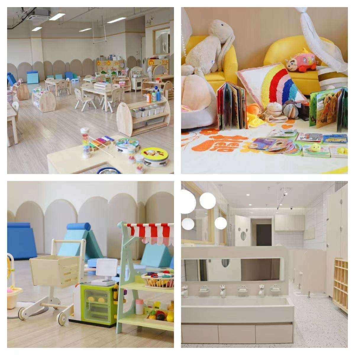 在示范实践基地筹建过程中,山东省婴幼儿发展与健康管理产业学院积极组建专业团队,对济南市历下区百合幼教集团开展政策支持、办园基础、理念特色等方面的实地调研,基于调研分析,从理念与目标、资源整合与配置、管理模式、师资队伍建设等层面构建了一套系统、精准、可操作的托幼一体化方案。基于尊重儿童发展、儿童主动学习的视角,遵循回应性照料理念,对托班环境进行了升级改造。设计三层递进式师资培训方案,指导托班教师从零打造专业温暖的托班。